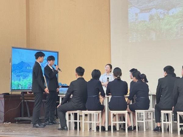 第一节主题班会课是文成职业高级中学郑晓莉老师执教的《行振兴志 筑新旅路》,以“看家乡十年变化”切入,通过“观视频 点燃家乡情怀”、“微时光 展望家乡旅游”、“话5A 感受崛起力量”、“颂劳模 领会工匠精神”、“树榜样 听听成长故事”、“思吾身 描绘志向蓝图”、“行当下 践行振兴之志”几个环节层层递进。整节课互动有序、高效,使同学们更好地了解家乡,感悟发展,并结合劳模工匠的例子坚定了同学们的理想信念。不负时代!不负年华!这是一场师生共赴的追光逐梦之旅!