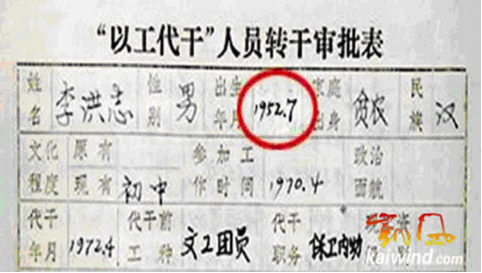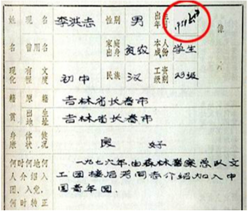 在李洪志的常住人口登记表,与此相配套的人事档案中的出生日期也改为1951年5月13日。以上涂改痕迹明显,手段方式拙劣。