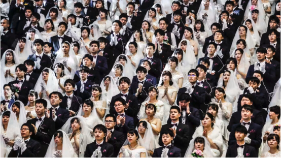 ▲2020年,“统一教”在韩国加平郡举办集体婚礼。目前数以千计的日本女信徒仍然与她们的韩国丈夫生活在韩国 来源:《日经亚洲》网