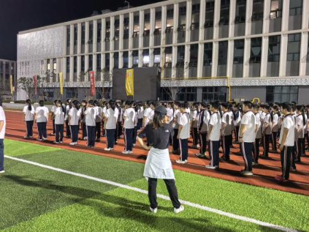 为迎接校运动会开幕式,彰显信息学部特色与师生精神风貌,10月12日晚,信息学部团委精心组织的高一新生方阵与机器人特色方阵排练活动在校园操场顺利开展。学部团委书记施经寿统筹主持排练工作,李婧老师协助指导大方阵训练,吴莹莹、王晓峰、张成月、高庆旭、吴杰等多位教师到场提供专业支持,共同助力排练高效推进。