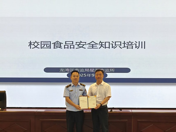 9月21日,我校在论道厅举行食堂食品安全专题培训暨专家聘任仪式,旨在通过 “专家指导 + 专业培训” 双轨模式,强化校园食品安全监管,切实守护全校师生饮食安全健康。本次活动由杨道德副校长主持,特邀龙湾区星海市监所副所长陈剑主讲,学校食堂管理人员和全体员工参加培训。