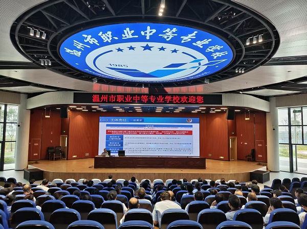 活动伊始,现场举行了温州市职业中等专业学校 “食品安全特聘指导师” 聘任仪式。杨校长代表学校,向龙湾区星海市监所副所长陈剑颁发聘书,正式聘任其为学校食品安全特聘指导师。接过聘书后,陈所长表示,将充分发挥市场监管部门的专业优势,定期为学校提供政策传达解读、风险排查、人员培训等支持,助力学校构建科学规范的食品安全管理机制。