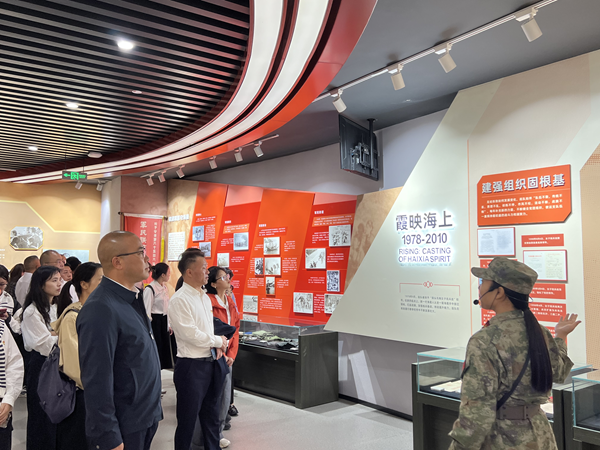 宣誓仪式后,全体党员怀着崇敬的心情,走进了洞头先锋女子民兵连纪念馆。这座记录着“巾帼战旗别样红”的展馆,通过丰富的历史图片、珍贵实物和多媒体展示,生动再现了女子民兵连六十多年来“不爱红装爱武装”的光辉历程。在讲解员的深情讲述中,大家仿佛穿越时空,看到了第一代女民兵在缺粮少弹的艰苦条件下,靠着“一根扁担两条腿”建设海防的坚毅身影;感受到了新时代女民兵继承传统、续写荣光的责任担当。大家纷纷表示,要学习和弘扬“爱岛尚武、励志奉献”的“海霞精神”,将这种忠诚担当、艰苦奋斗的作风融入到日常教学和管理工作。