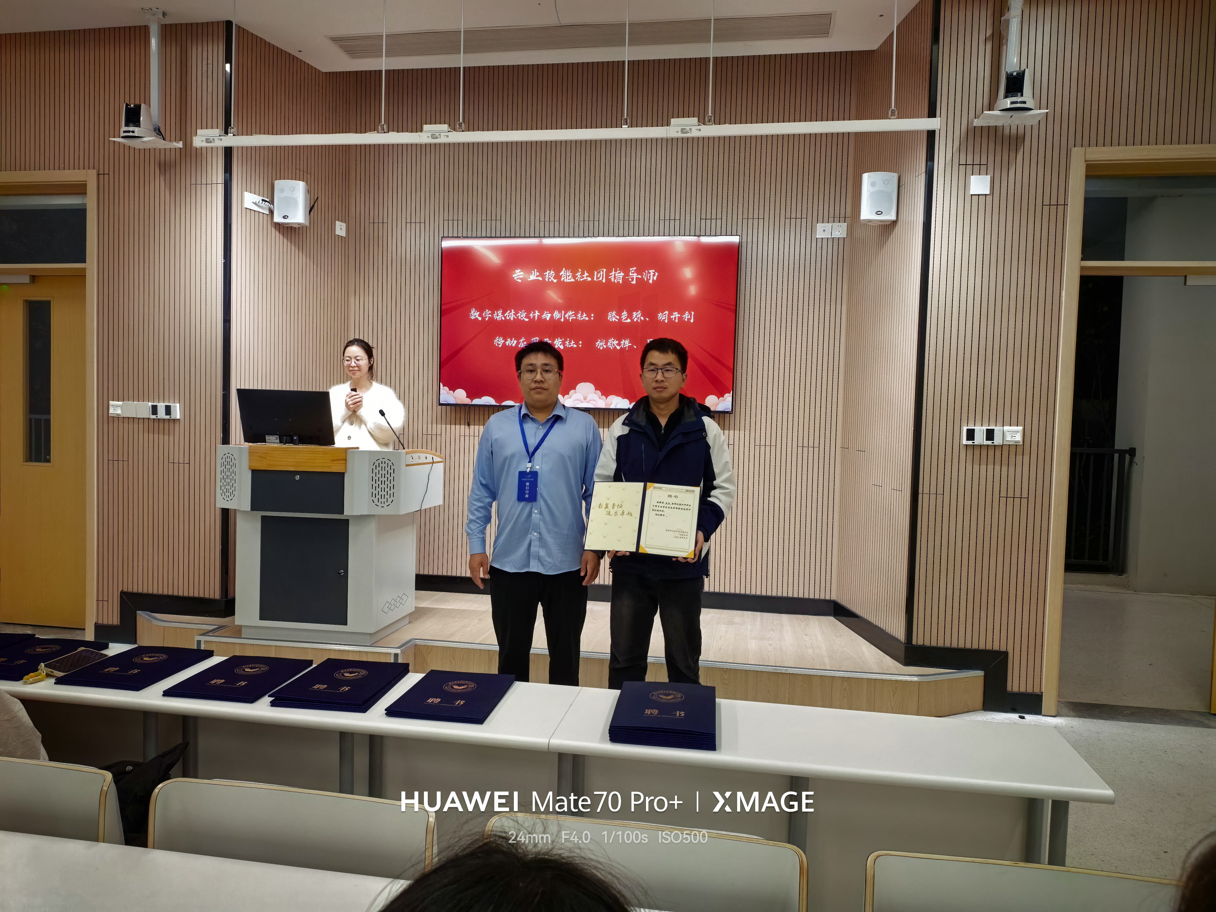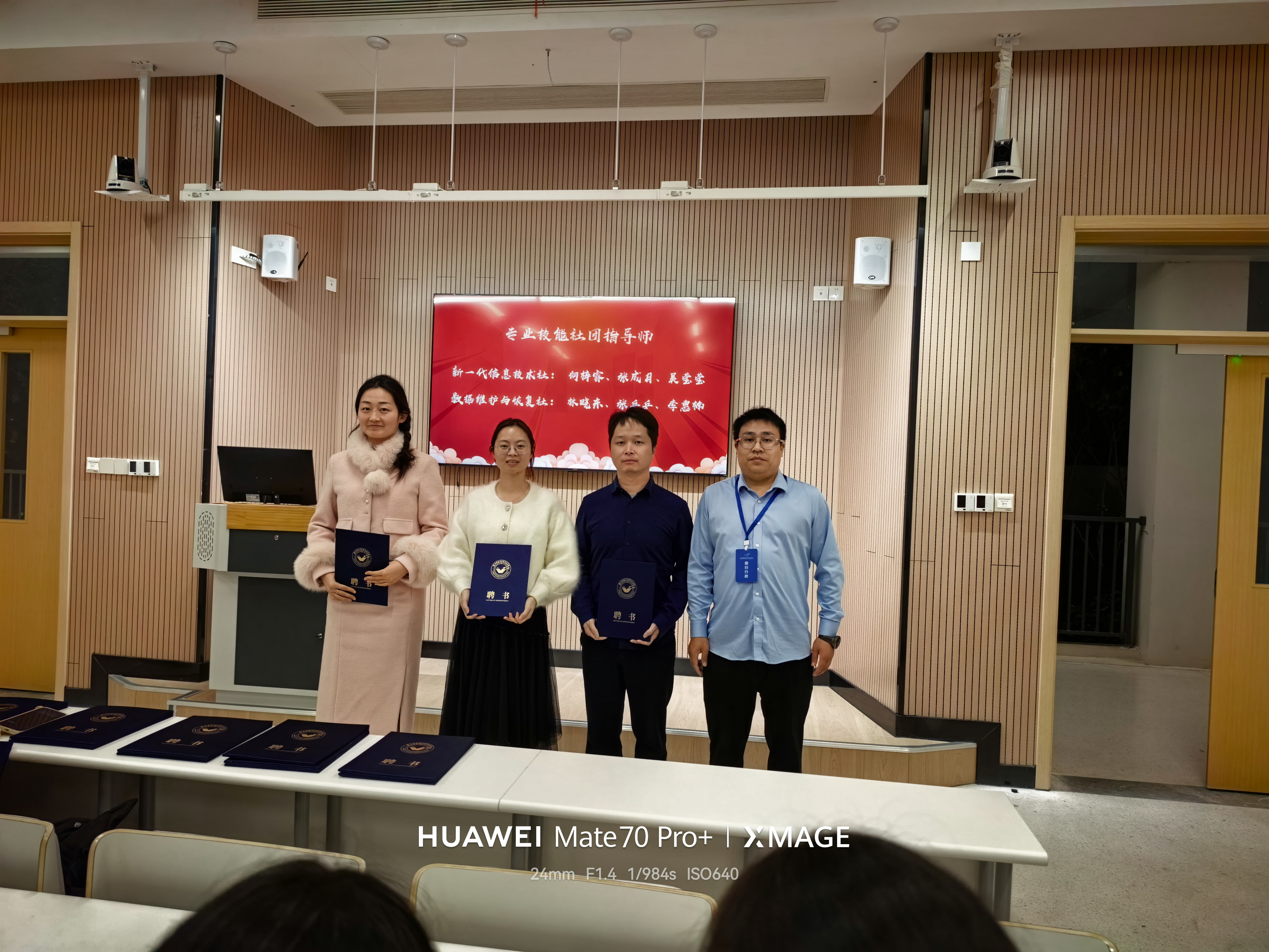 本次聘任仪式分为专业技能社团指导师与技能训练队指导师两大板块,涵盖物联网、大数据、数字媒体、移动开发等前沿领域,形成“社团+技能队”双轨并行的实践育人体系。
