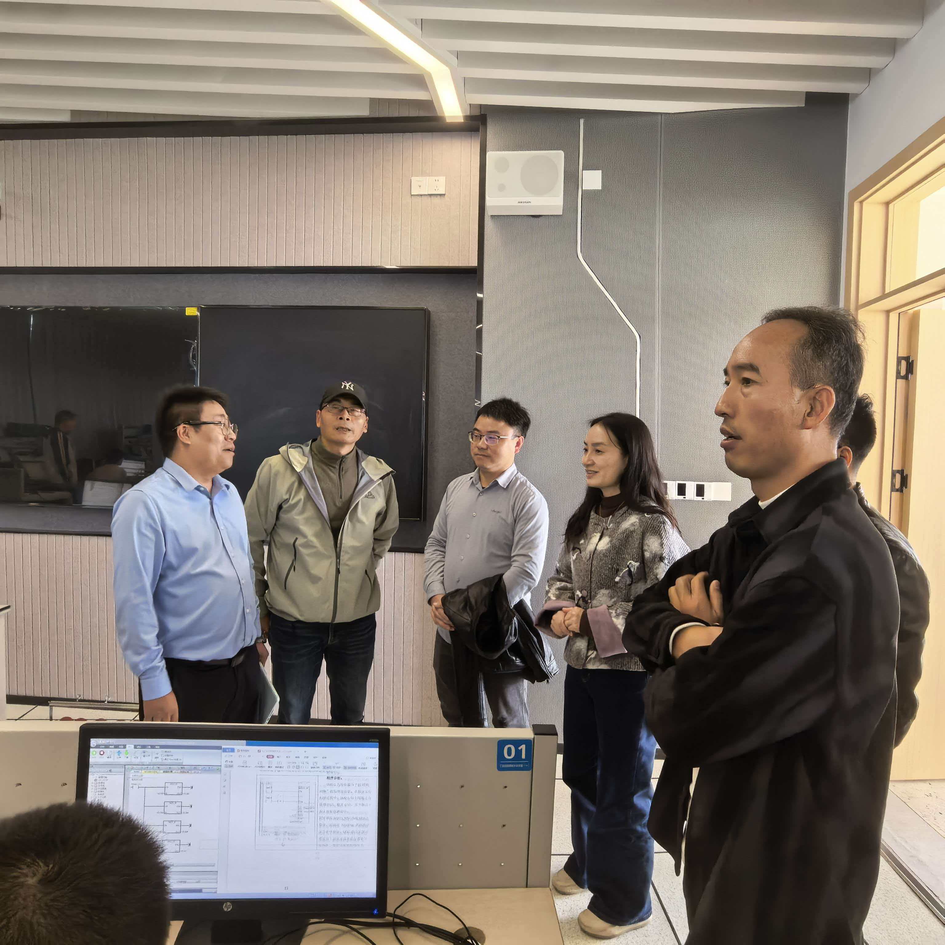 会后,考察团实地参观了我校物联网实训基地、互联网创新中心。在综合实训平台前,双方教师现场演示设备组网、数据采集等操作流程,并就虚拟仿真资源共建、师资互派机制等具体合作事项交换意见。浙交职院教师对我校“理实一体、虚实结合”的实训环境给予高度评价,认为相关经验具有可复制推广价值。