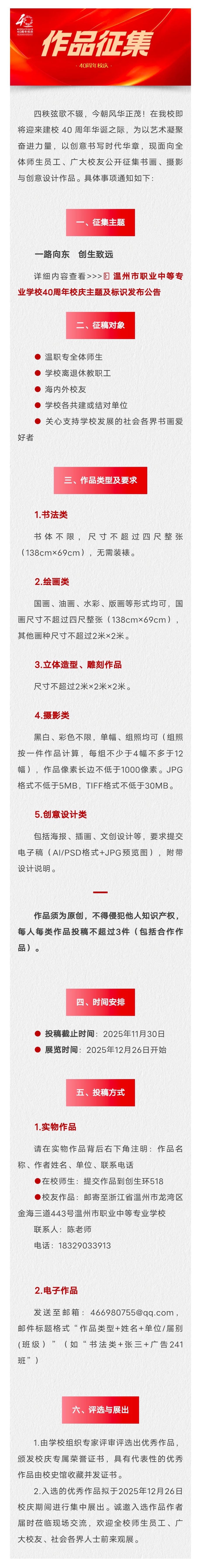 校庆专栏 | 温州市职业中等专业学校建校40周年艺术作品征集