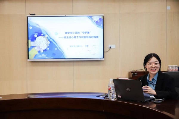 研讨过程中,经贸学部高一段班主任卢青老师带来了一场别开生面的心理专题讲座。卢老师凭借其专业的心理学背景和贴近学生的咨询经验,从学生常见的心理现象入手,分析了中职阶段学生面临的成长困惑与压力源,并重点讲解了如何识别学生的心理信号、如何进行有效沟通与疏导、如何将心理健康教育巧妙融入日常班级管理等实用技巧。这场讲座如一场及时雨,增强了班主任们应对学生心理问题的能力,彰显了工作室对学生心理健康的高度重视与专业守护,体现了育人工作中不可或缺的“温度”。