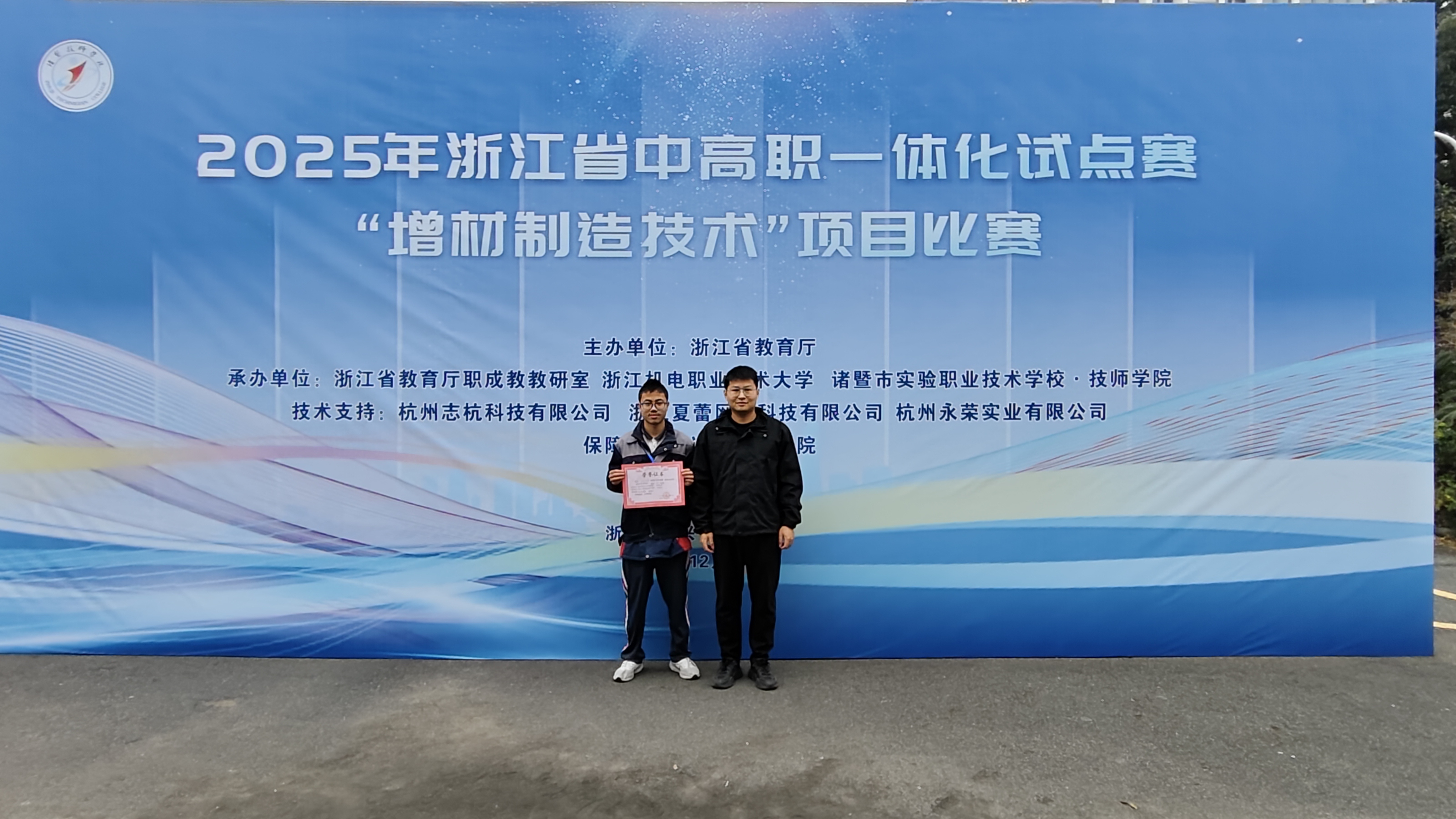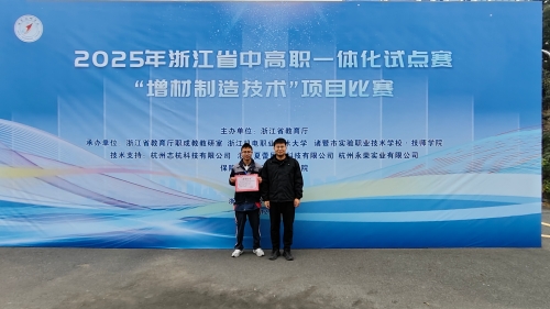近日,2025年浙江省中高职一体化试点赛“增材制造技术”项目圆满落幕。温州市职业中等专业学校机电学部与浙江工贸职业技术学院联合组队参赛,凭借扎实的专业功底与出色的临场发挥,在激烈竞争中脱颖而出,荣获团体二等奖。