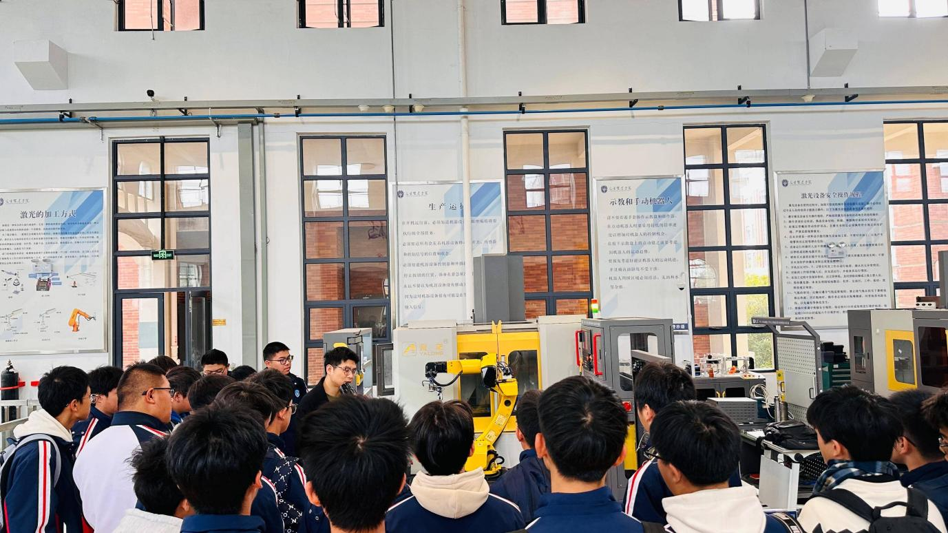 抵达校园后,在浙工贸教师的带领下,同学们首先参观了智能制造实训中心。工业机器人精准的操作演示、数控加工设备的高效运转、智能生产线的协同作业,让同学们直观感受到机电专业的技术魅力。现场,讲解教师结合实训设备,生动介绍了从零件加工到成品组装的全流程,将抽象的专业知识与实际应用相结合,并进一步解答了同学们关于未来职业成长的疑惑。