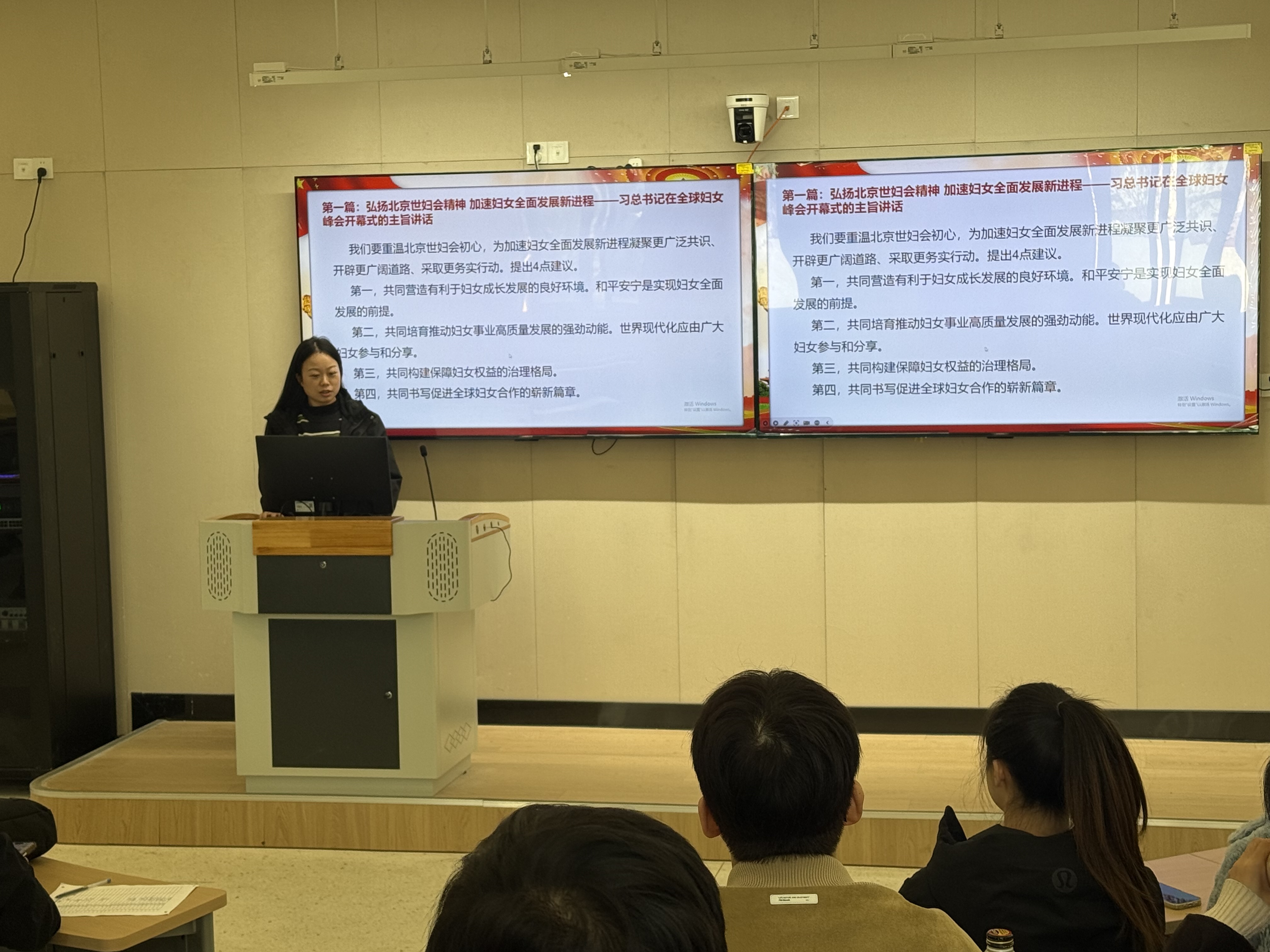 二、本月政治理论学习坚持“第一议题”制度,围绕以下内容开展系统学习与研讨:学习《习近平谈治国理政》第五卷,持续在学懂弄通做实上下功夫,强化学思用贯通、知信行统一。学习习近平总书记在全球妇女峰会开幕式主旨讲话《弘扬北京世妇会精神 加速妇女全面发展新进程》(发表于2025年10月14日《人民日报》),把握以人民为中心的发展取向,推动妇女事业与经济社会协调发展。学习习近平总书记重要文章《推动落实全球发展倡议、全球安全倡议、全球文明倡议、全球治理倡议》(发表于2025年10月15日《求是》),深刻领会“四大倡议”的时代内涵和实践要求。学习《中国共产党第二十届中央委员会第四次全体会议公报》(发表于2025年10月24日《人民日报》),准确把握国家治理体系和治理能力现代化的重大部署。学习习近平总书记关于《中共中央关于制定国民经济和社会发展第十五个五年规划的建议》的说明(发表于2025年10月29日《人民日报》),聚焦高质量发展、科教兴国、民生福祉等重点任务。学习习近平总书记在亚太经合组织第三十二次领导人非正式会议第一阶段会议上的讲话《共建普惠包容的开放型亚太经济》(发表于2025年11月1日《人民日报》),服务高水平对外开放大局。学习习近平总书记在亚太经合组织工商领导人峰会上的书面演讲《发挥亚太引领作用 共促世界发展繁荣》(发表于2025年11月1日《人民日报》),凝聚开放合作共识与行动合力。