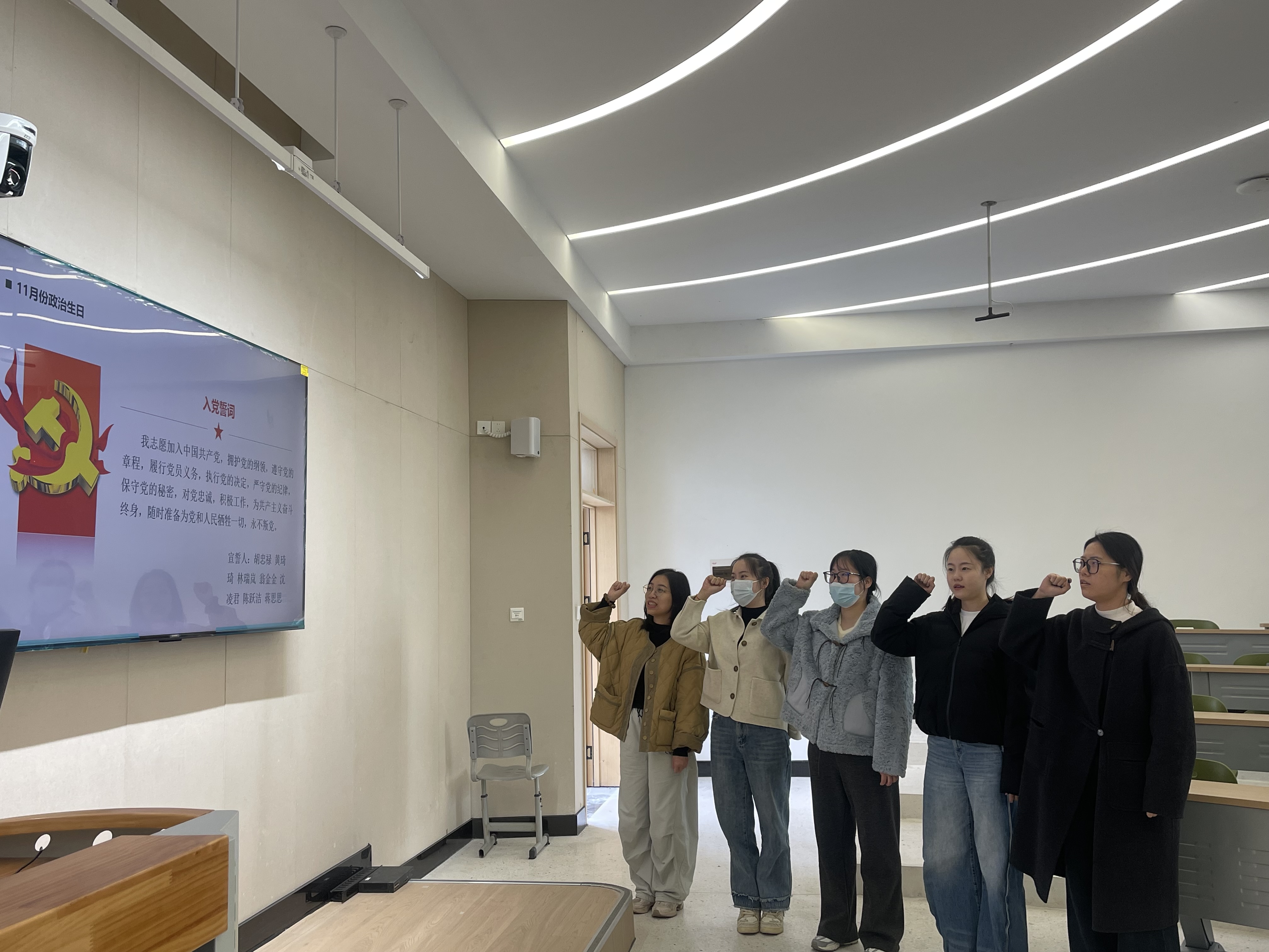 为11月入党的党员同志过“政治生日”。大家面向党旗重温入党誓词,以庄严仪式淬炼党性、砥砺初心。再赠送政治生日贺卡,分享入党初心与成长感悟,强化党员身份意识和责任担当。
