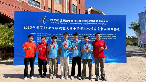 近日,2025年世界职业院校技能大赛争夺赛机电设备安装与运维赛道在天津圆满收官。我校机电学部四位学子——2022工业机器人应用中高职一体化班的张伯特、叶均安、卫涛,以及 2023 数控技术应用中高职一体化班的郑轩,在谢光直、林丙好两位老师的悉心指导下,代表浙江省出征。面对全国众多中职、技工院校精锐之师的激烈角逐,他们凭借深厚专业素养、精湛技能与默契协作,沉着应战、精准操作,最终斩获铜牌,为省争光,尽显温职专风采。