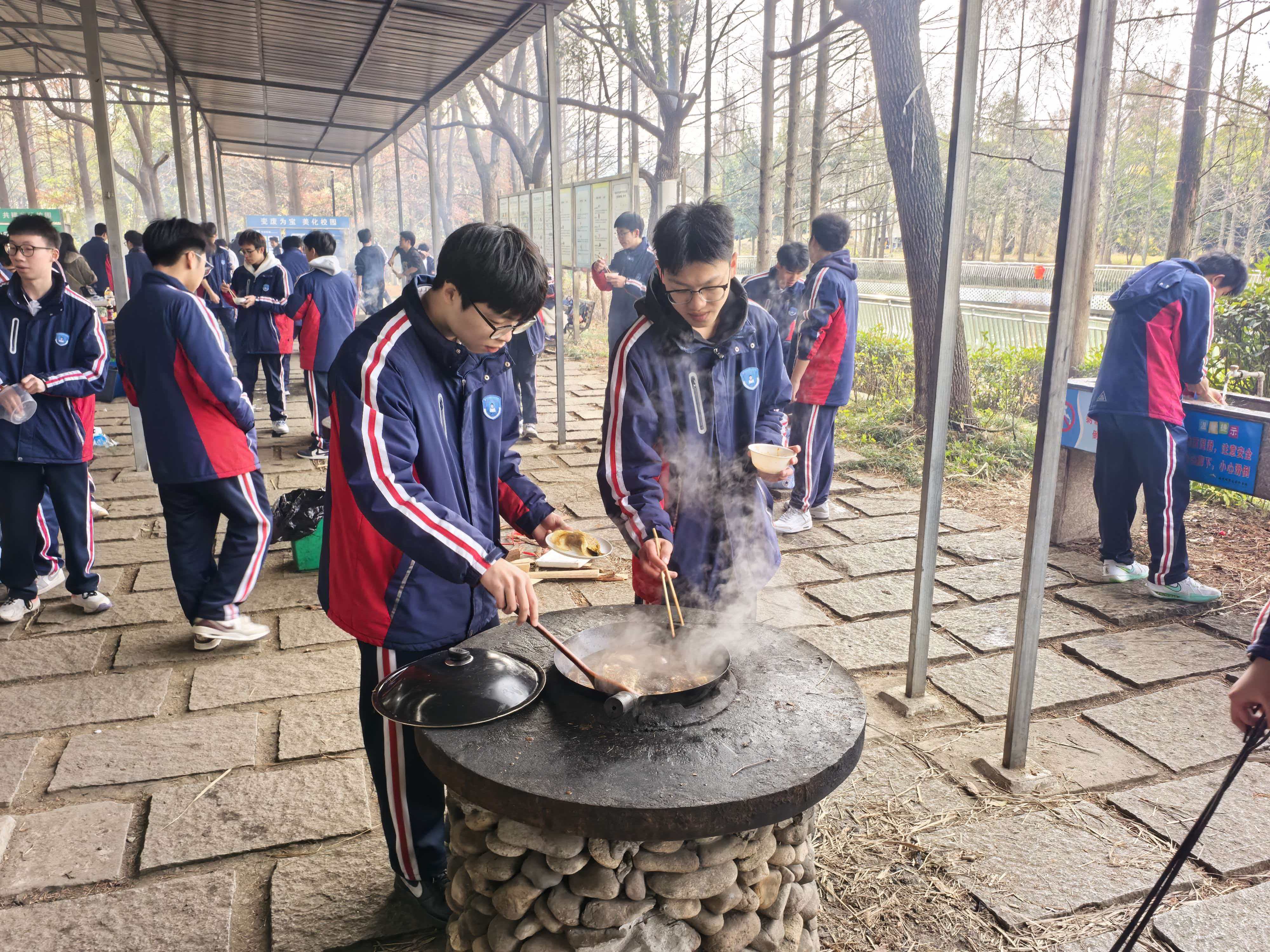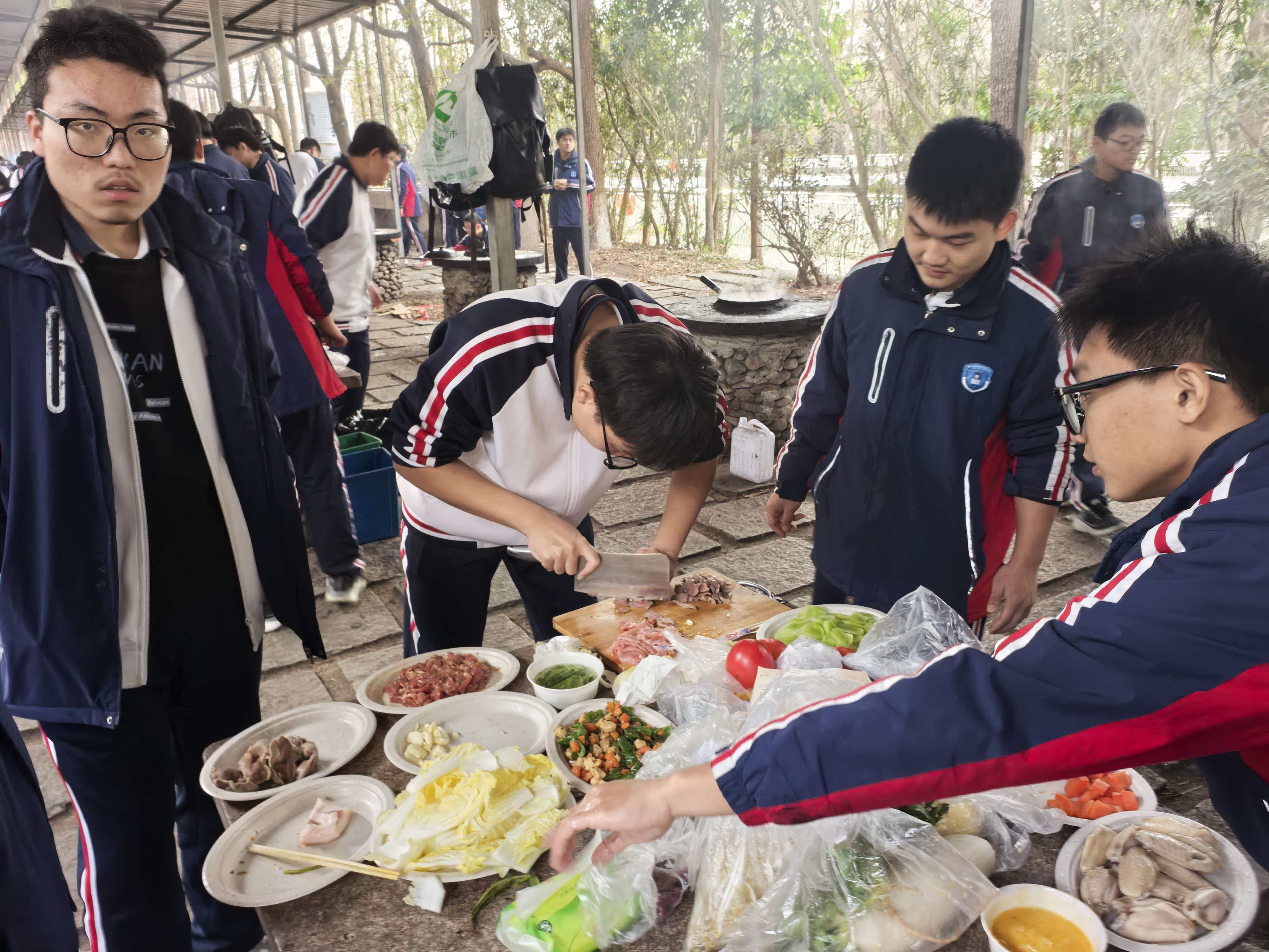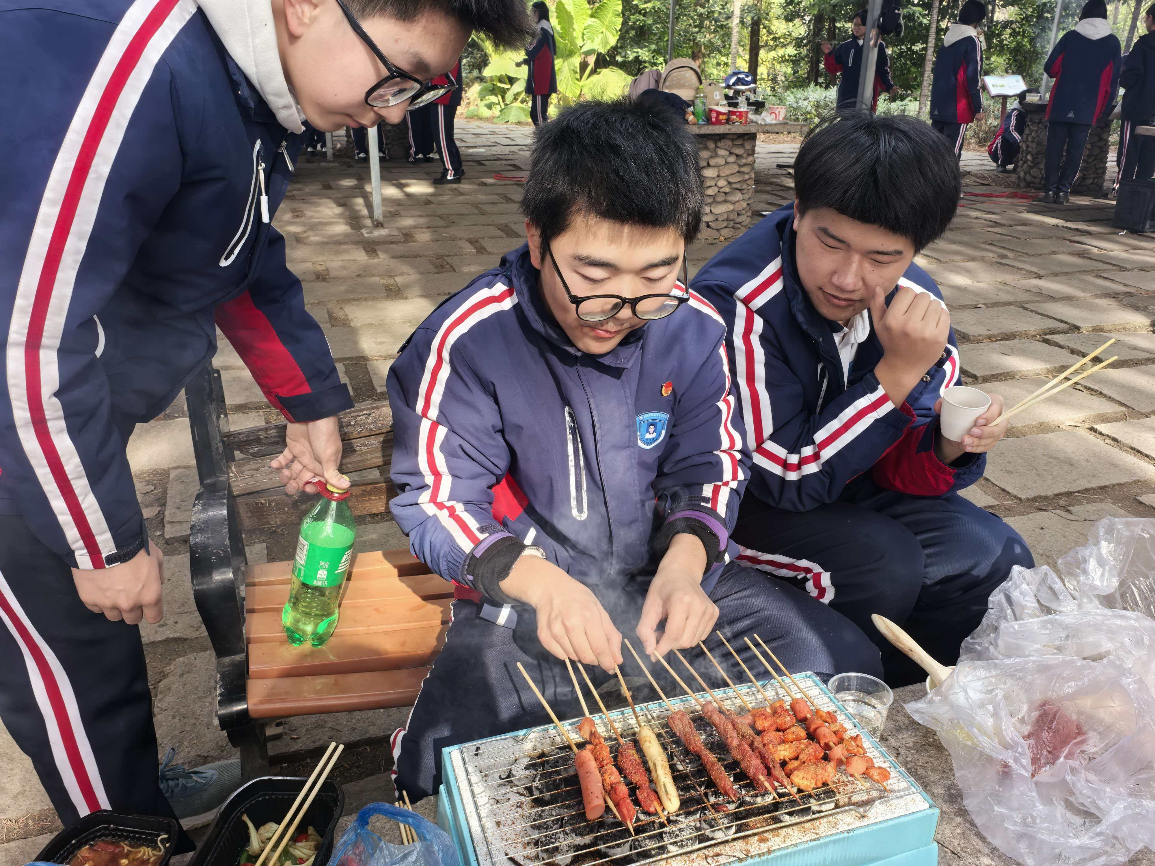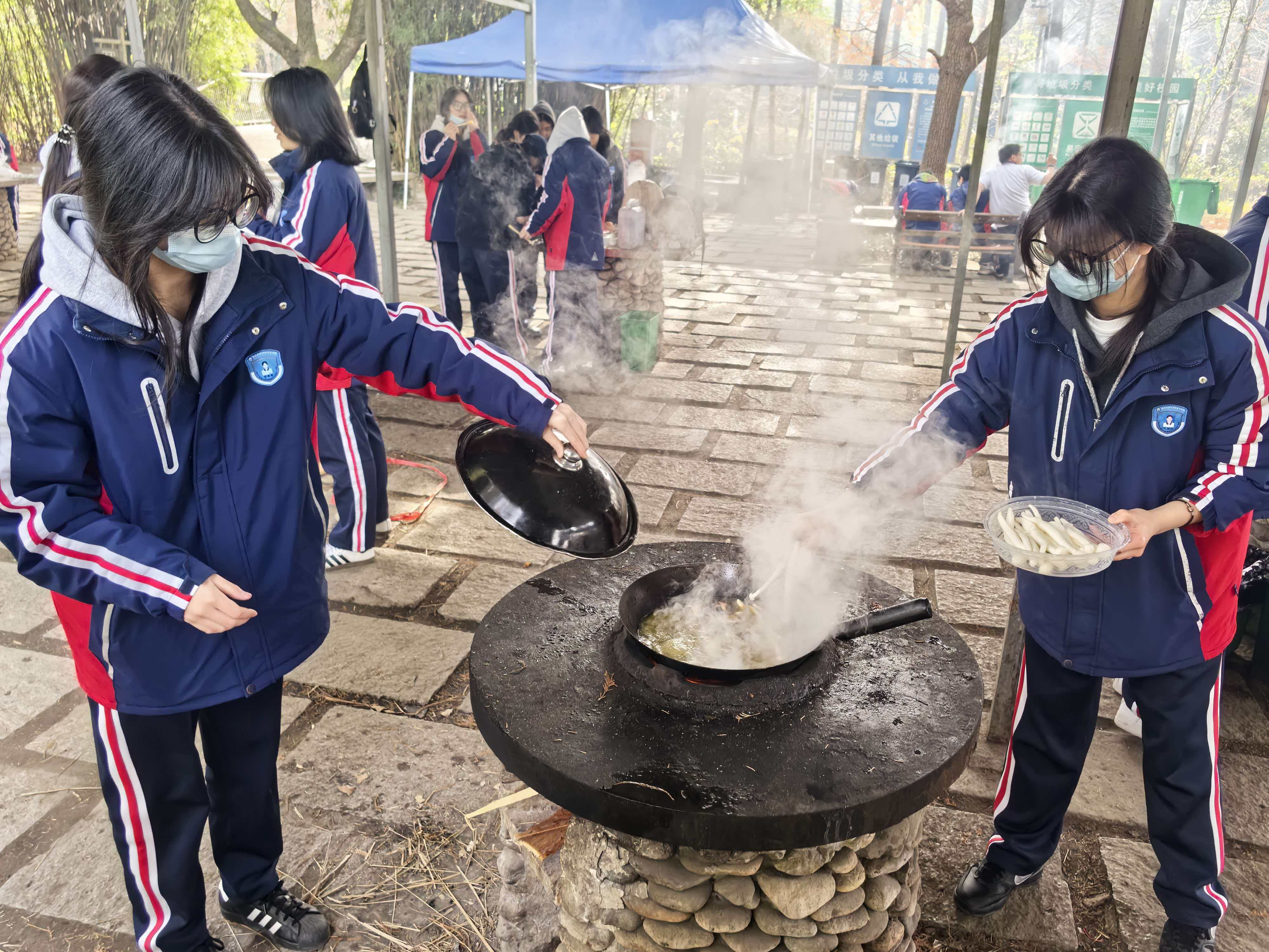 从食材清洗到锅铲翻炒,从串起烤串到灶火添柴,同学们以小组为单位分工协作。