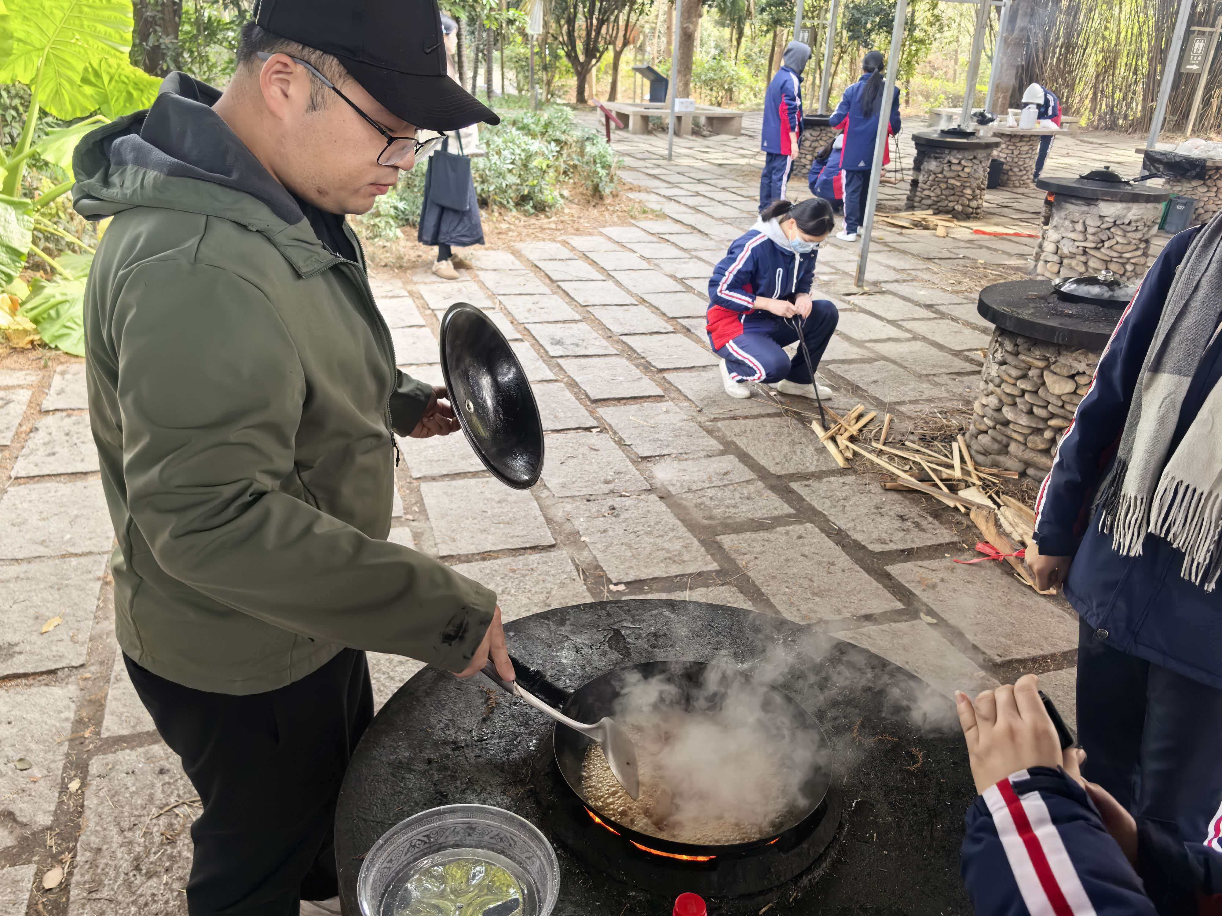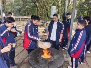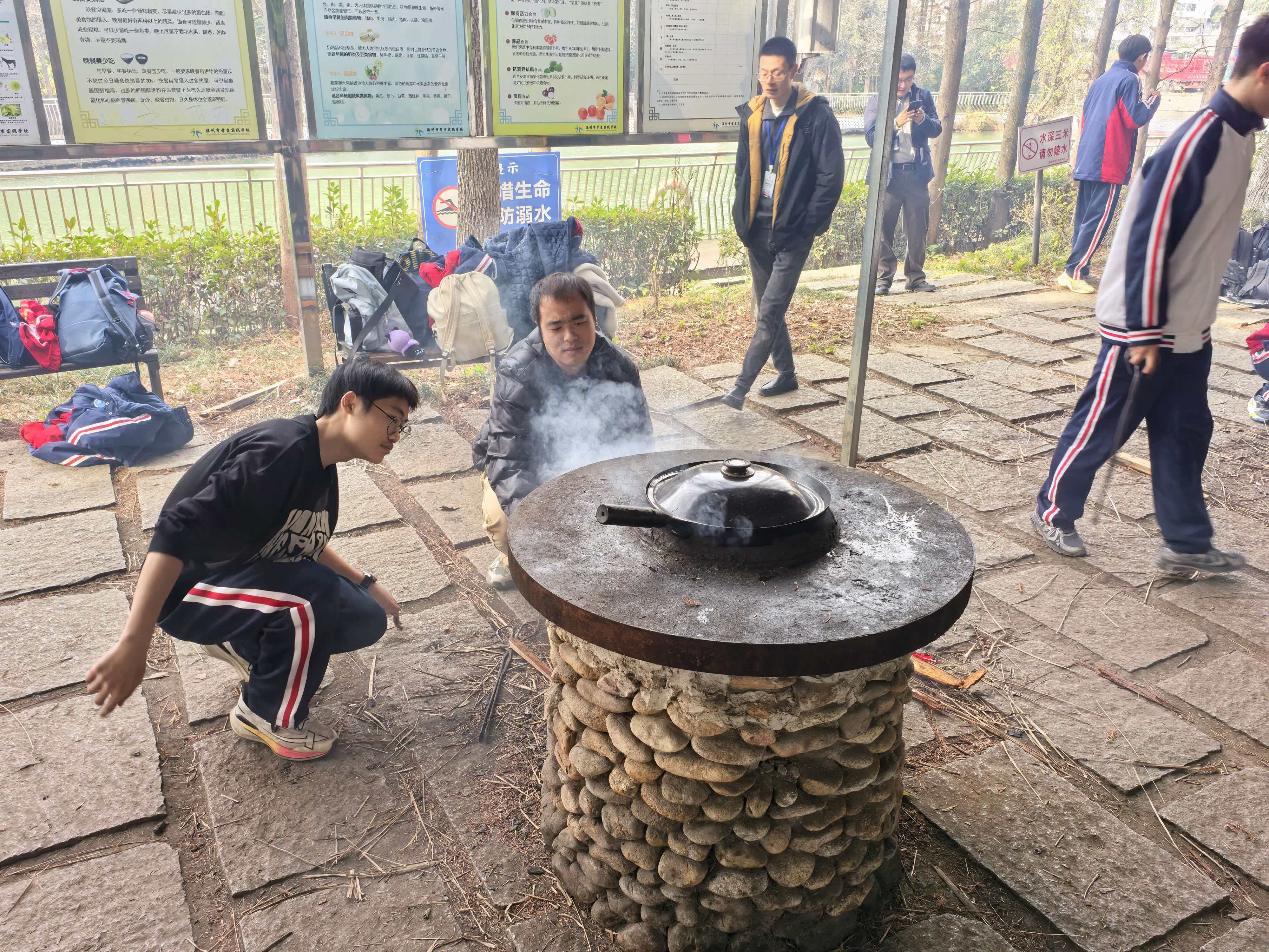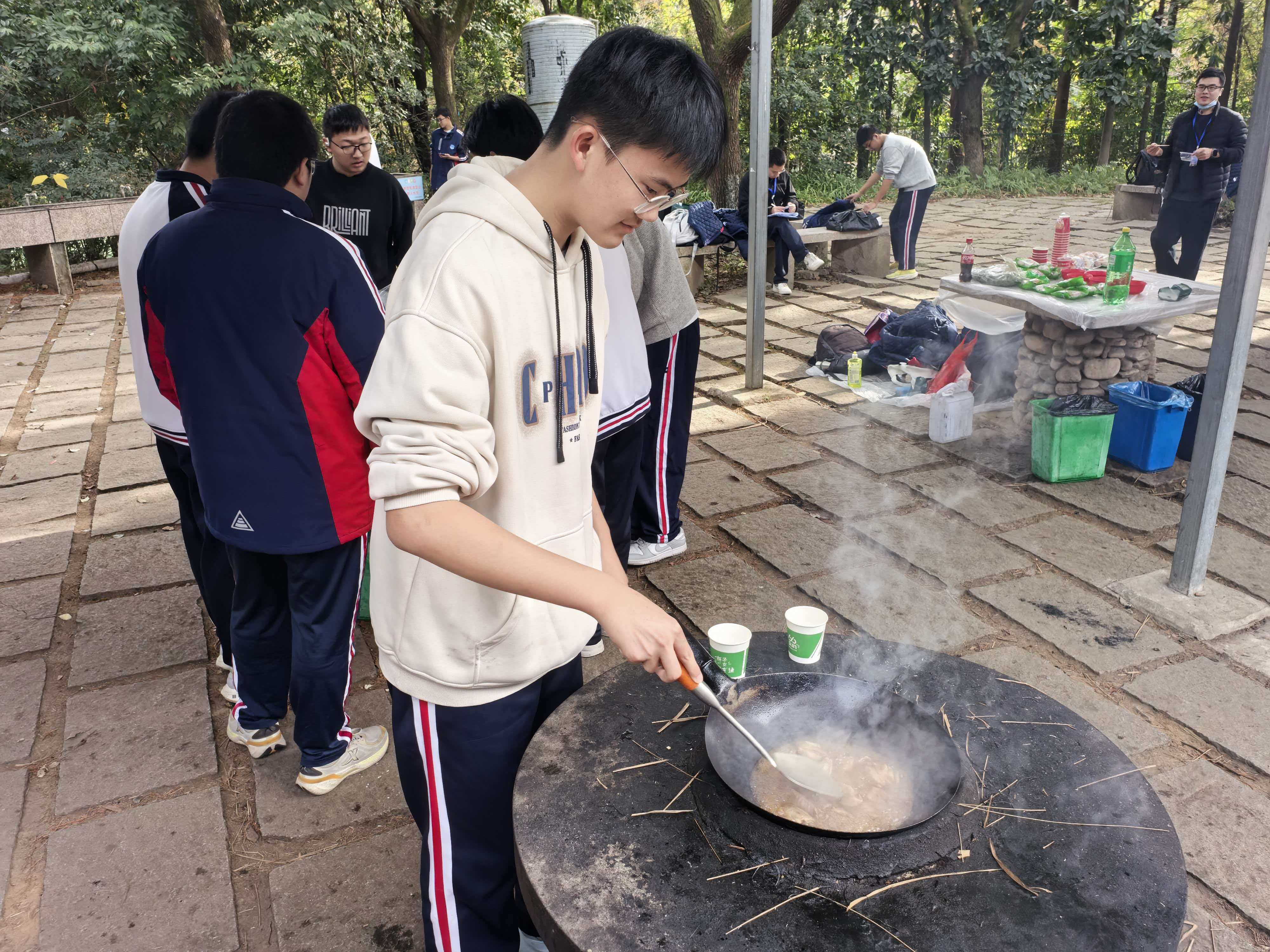 从食材清洗到锅铲翻炒,从串起烤串到灶火添柴,同学们以小组为单位分工协作。
