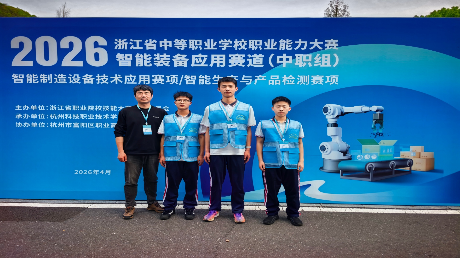 2026年4月12日,浙江省中等职业学校职业能力大赛(学生技能类)“智能生产与产品检测”赛项在杭州富阳职业高级中学圆满落幕。我校精工学部工业机器人专业陈浩然、刘权、方忠棋三名学子组建团队,在黄晓祥、夏小军两位教师的精心指导下,与全省28支参赛强队同台竞技、奋勇角逐,凭借扎实的专业功底与高效的团队协作脱颖而出,成功斩获省级二等奖,实现我校在该赛项上的全新突破,为学校赢得荣誉,充分彰显了学部技能育人的显著成效。