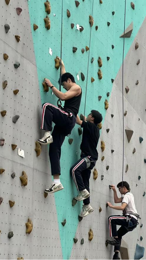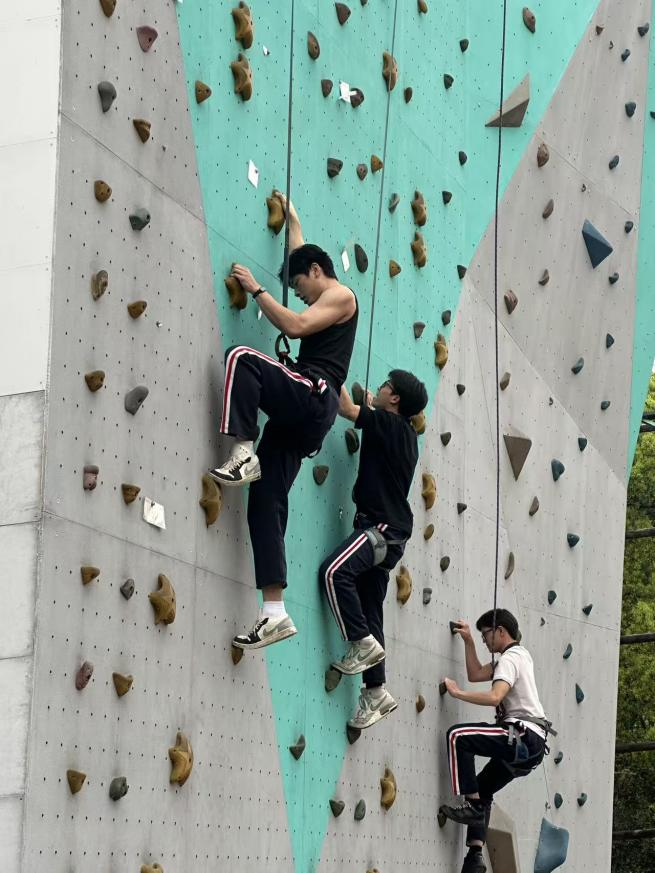 在各类创意工坊中,大家认真聆听讲解,动手体验制作乐趣。从材料加工到细节打磨,同学们专注投入、精益求精,在指尖实践中感受匠心之美,提升动手能力与创新思维;户外拓展同样精彩无限。攀岩项目中,同学们勇敢挑战自我,系好安全装备,一步一步向上攀登。尽管过程充满挑战,但大家相互鼓励、坚持到底,在挑战中突破自我,展现了高三学子不惧困难、奋勇向上的精神风貌;在自然实践区域,同学们跟随老师辨识植物、观察生长规律,松土除草、培土养护,近距离感受生命成长的力量。亲近自然的同时,也增强了劳动意识和生态环保理念。