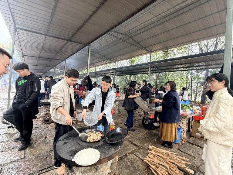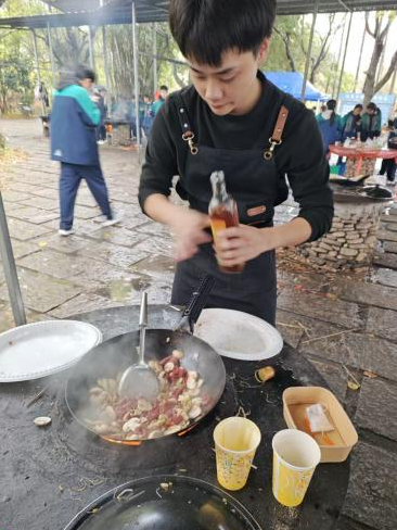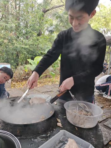 上午,学生们走进实践学校,只见灶台错落、食材齐备,一场充满烟火气的厨艺实践正式拉开序幕。同学们分工协作,默契配合,洗菜、切配、生火、翻炒,每一个环节都有条不紊。火焰跳动,香气四溢,锅碗瓢盆碰撞出青春最热闹的声响。